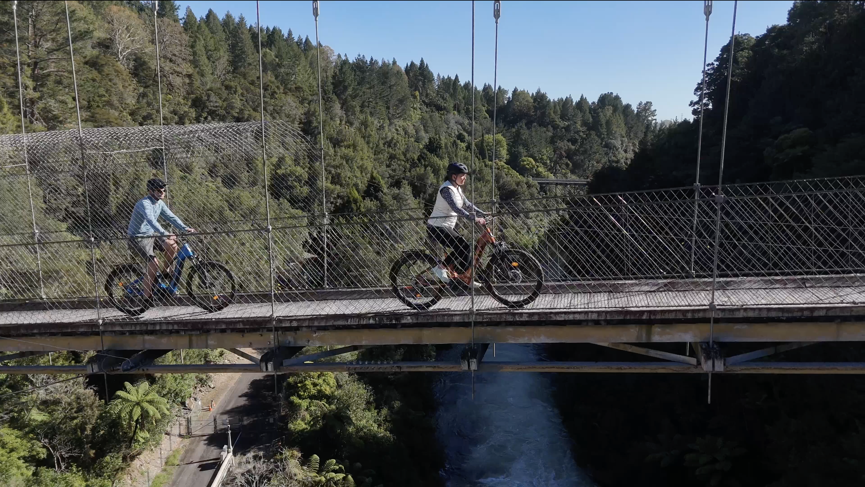 An adventurous ride through native forests and along dramatic river banks, with highlights including the Mangakino Suspension Bridge, Arapuni Power Station, and the spectacular Waipapa Dam.